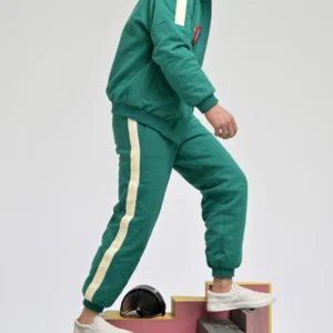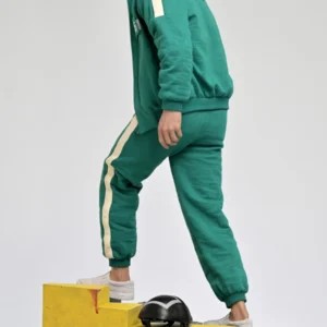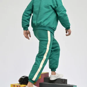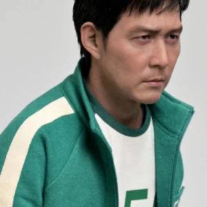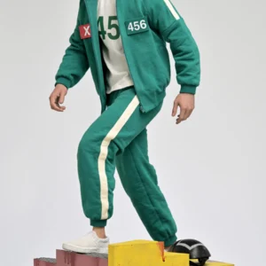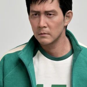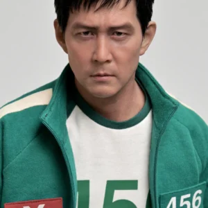 The expression on Gi-hun’s face is intentionally subtle yet intense, reflecting his internal evolution from desperate contestant to determined challenger. Every wrinkle, pore, and hair is meticulously rendered, embodying the psychological depth of the character portrayed by Lee Jung-jae. He stands confidently on a sleek, minimalist base inspired by the show’s visual language, completing a display that demands attention and respect.
